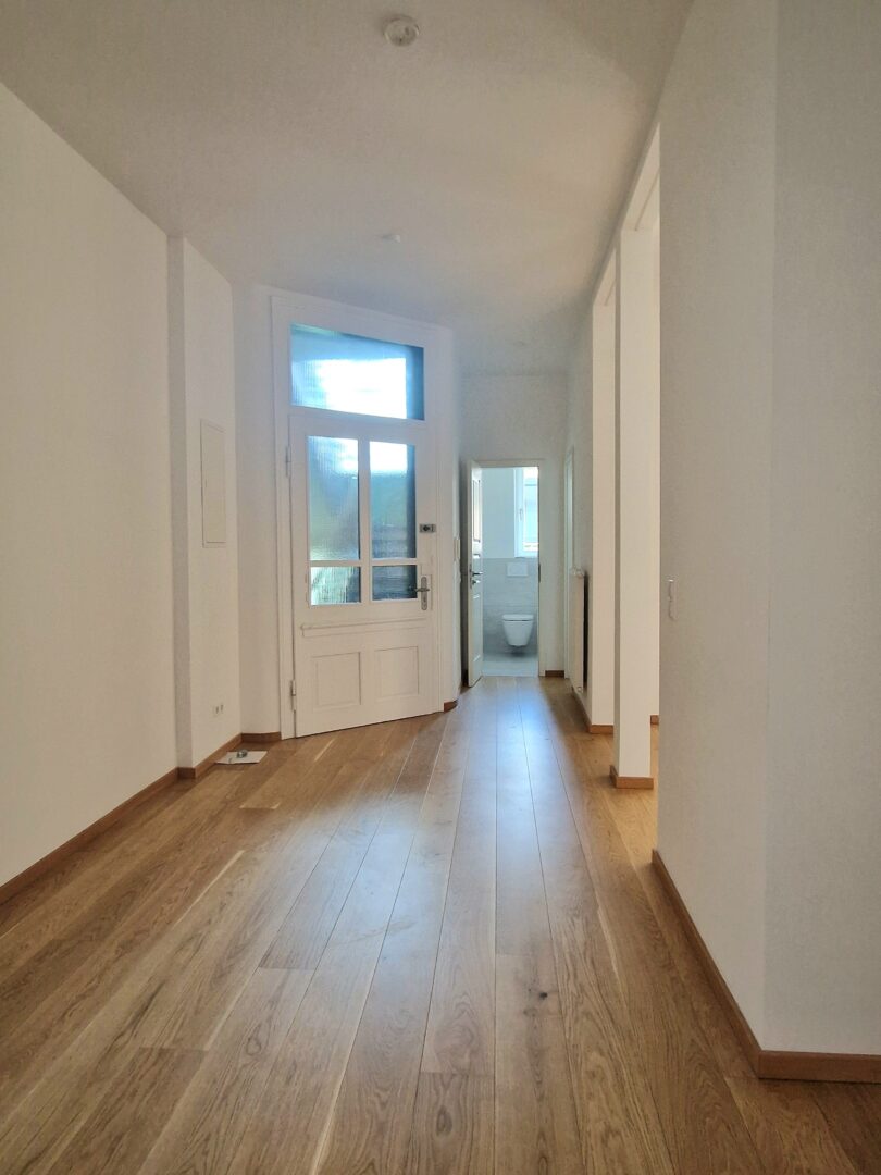 Die Wohnung bietet ein separates Schlafzimmer, ein großzügiges Wohnzimmer sowie ein offen gestaltetes Esszimmer, das fließend in den Flur und die angrenzende Küche übergeht – ideal für moderne Wohnideen und gemütliche Abende mit Familie oder Freunden.