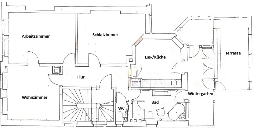 Das Herzstück der Wohnung bildet die große Wohnküche – ideal für gemeinsame Kochabende. Von hier aus gelangen Sie in den lichtdurchfluteten Wintergarten, der zum Verweilen und Entspannen einlädt. Von dort führt der Weg direkt auf die weitläufige Terrasse – perfekt für gemütliche Stunden im Freien.