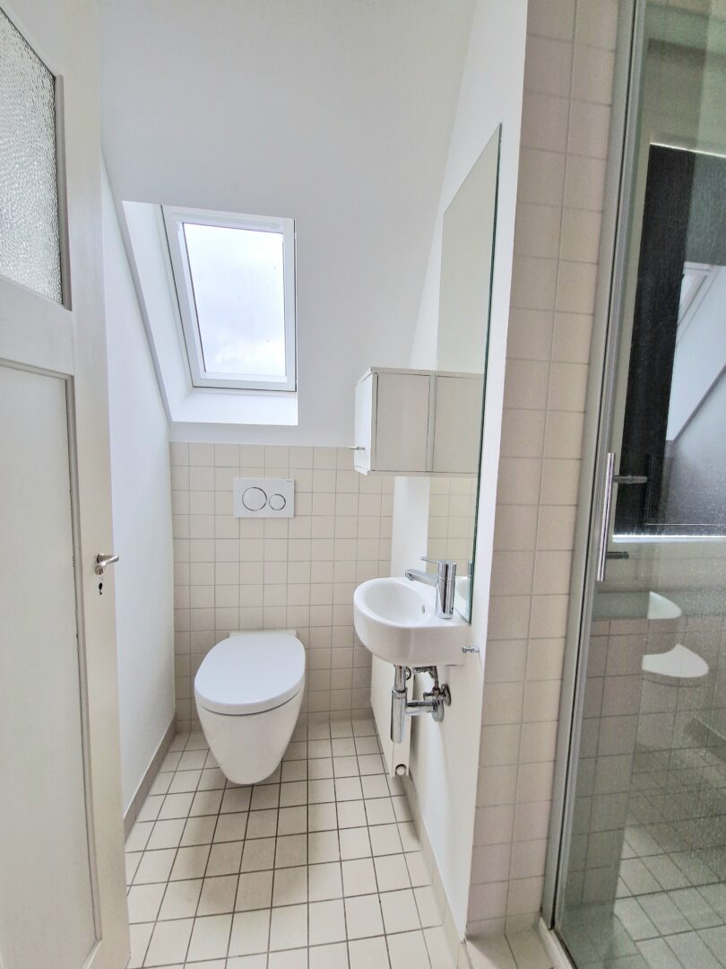 Im unteren Geschoss befinden sich drei Schlafzimmer – zwei davon mit angrenzendem Ankleide- bzw. Arbeitszimmer. Ein stilvolles Tageslichtbad mit Badewanne, Dusche und WC sowie der Zugang zu einem kleinen Balkon sorgen hier für Wohlfühlatmosphäre. Ein zusätzliches Dusch-WC ergänzt diesen Bereich und bietet praktischen Komfort.