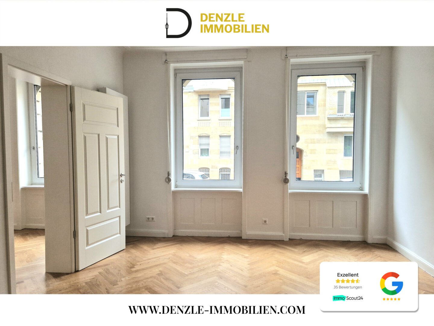 Stilvolles Fischgrätparkett, beeindruckende Deckenhöhen und hochwertige Materialien schaffen ein Wohnambiente, das Eleganz und Behaglichkeit harmonisch vereint.