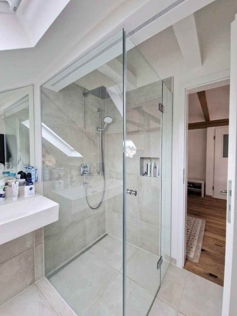 - Tageslicht-Badezimmer mit Regendusche und Waschtisch
